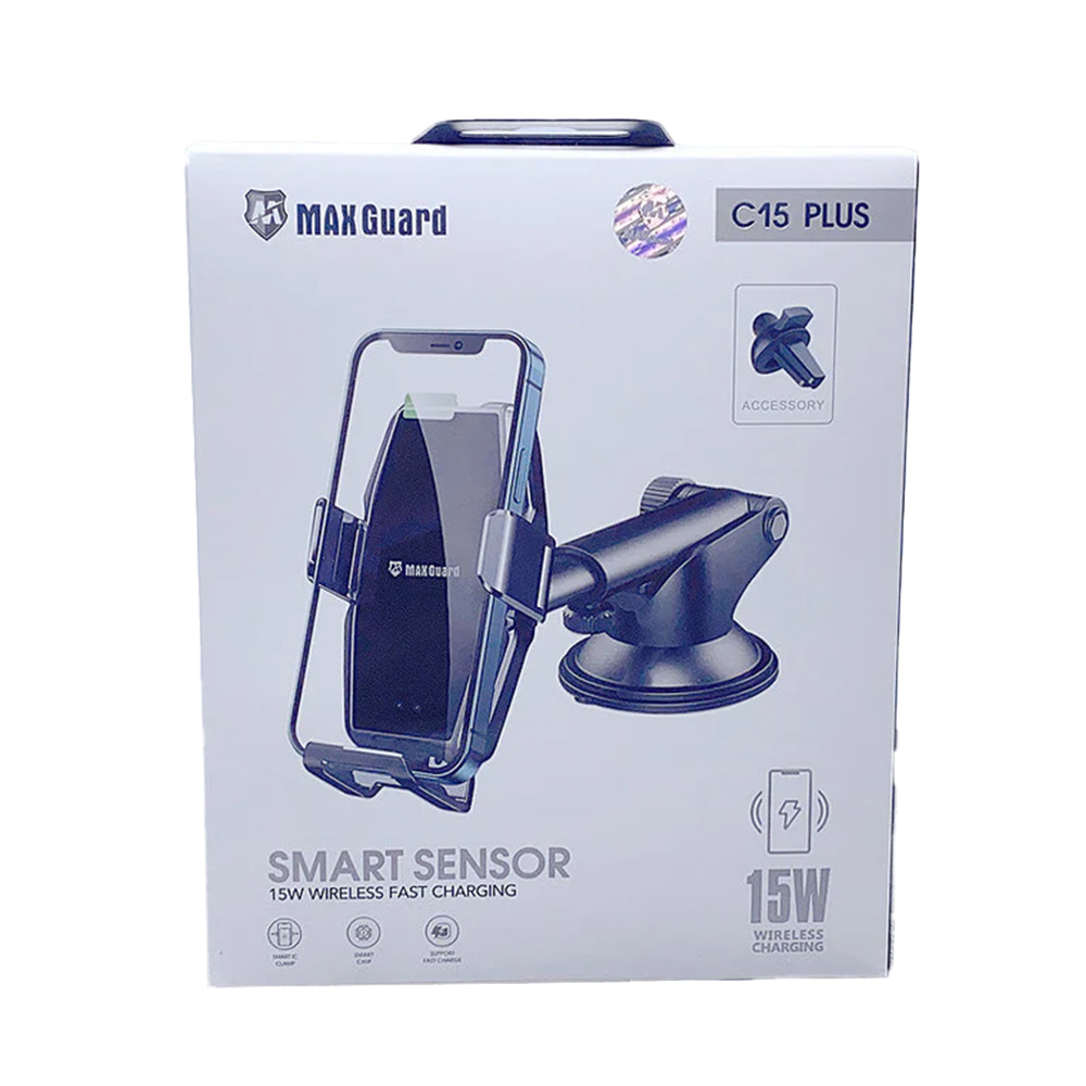 Maxguard 15W Wireless Car Charger C15 Plus delivers fast, secure charging on the go. Effortless one-hand operation with auto-clamp design. A strong grip ensures stability on bumpy roads. 360° rotation for the perfect viewing angle. Smart heat management protects your device.
